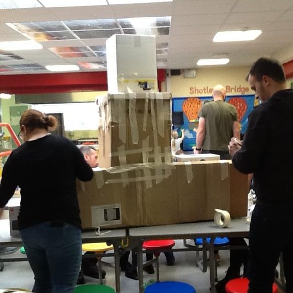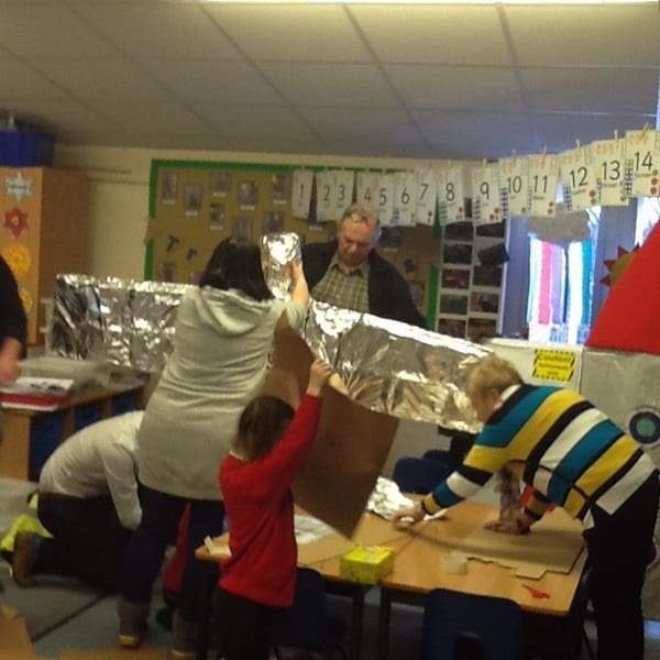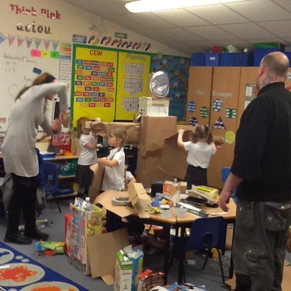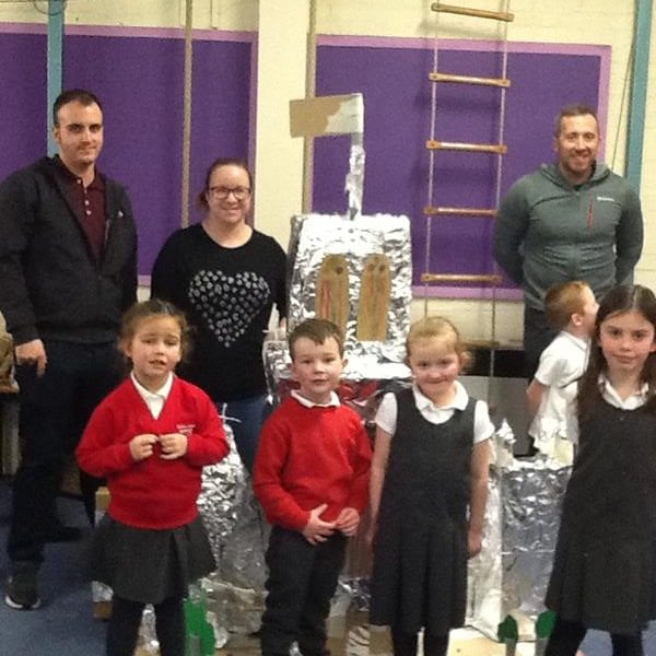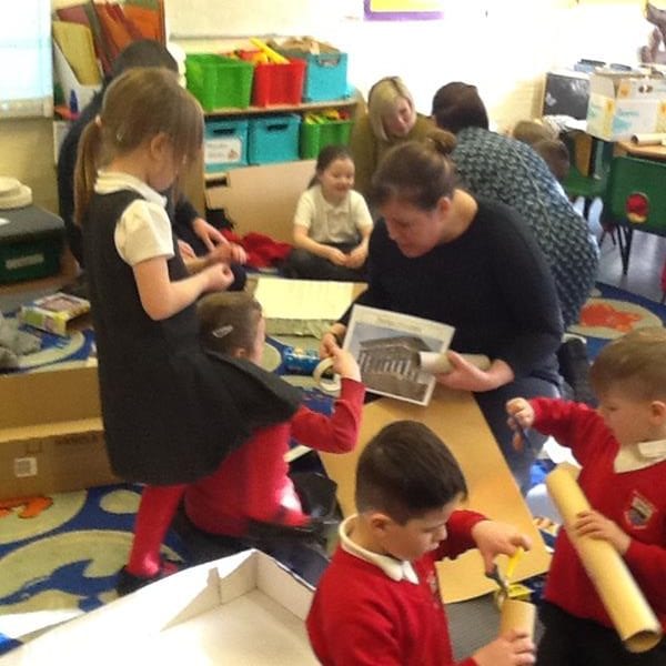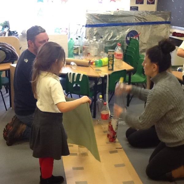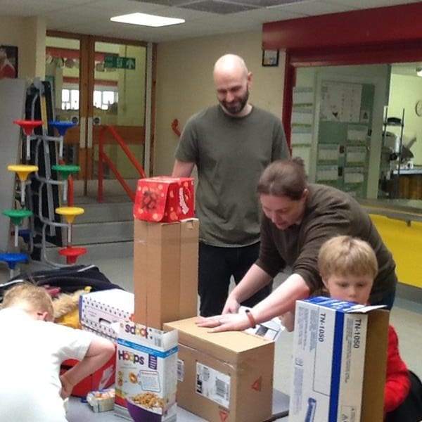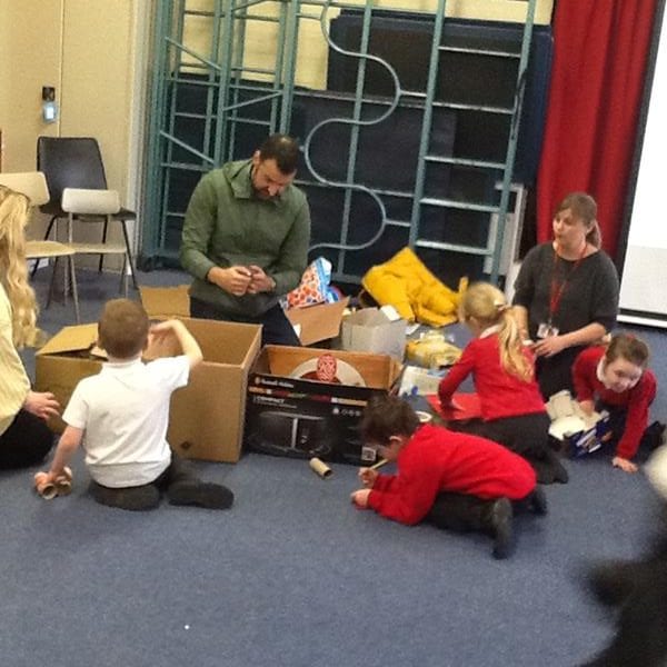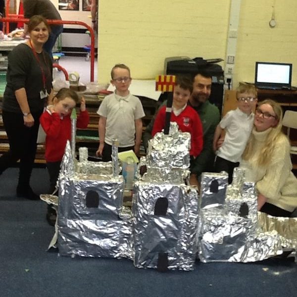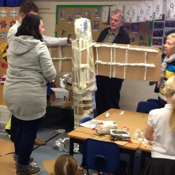 Step Two: Invite parents and carers in to help the creation of the models. Instructions were given and everyone got to work. There was co-operation, competition and collaboration as well as much speaking and listening involved. The children shared the skills learnt in previous art and design sessions with parents to create their 3D models. Thank you to everyone who contributed materials and also to those who came in and enjoyed the afternoon, we really appreciated your support.
