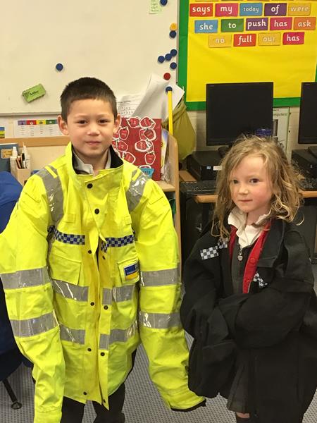 On Tuesday the children were shocked to see the emergency services at school. Year 1 went straight out to investigate what had happened. They discovered that a UFO had crashed into the school field. The children worked with both the police and fire service to investigate the scene. They had the opportunity to look at the equipment the fire services had brought along and they all got to have a go at using the hose. All children also worked with the police to find out more about their job role and what they do at the scene of a crime. Children had the chance to try on uniforms and take their own finger prints. Children wrote lists of what they found at the scene of the crime and made a class mind map answering the 5 W’s.